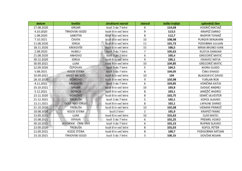 11.09.2021 KOZJE STENA kozli 8 in več letni 8 100,7 PODGORNIK MITJAN