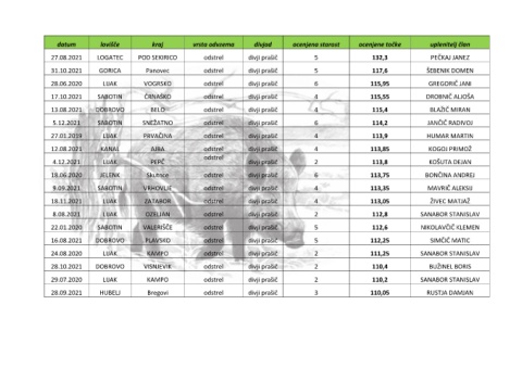 22.01.2020 SABOTIN VALERIŠČE odstrel divji prašič 5 112,6 NIKOLAVČIČ KLEMEN